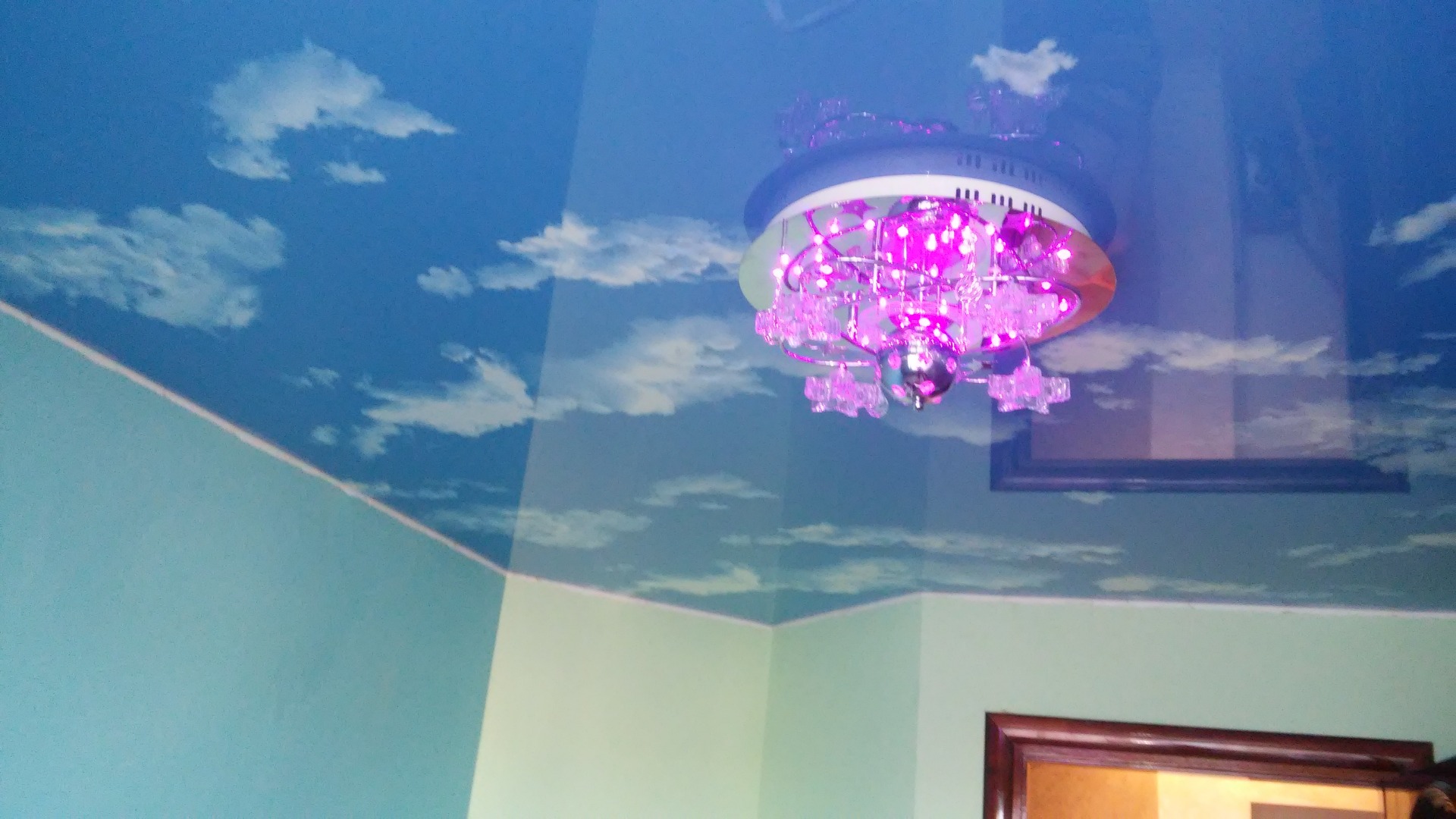 Натяжна стеля володіє пиловідштовхуючими властивостями і не вимагає додаткового догляду. Але при необхідності його можна мити і протирати.